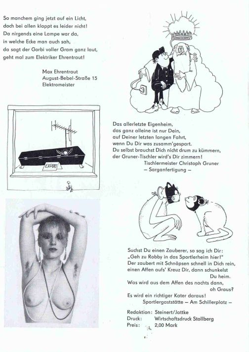 in der ersten Reihe. So wurde die Werbung aufs Korn genommen, die Machenschaften unserer ehemaligen Staatsführung in Wandlitz