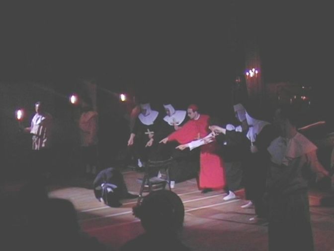 den Narren, die aus dem „Loch” gekrochen kamen, gemeint sind die Kellerräume in der Dürer-Schule,