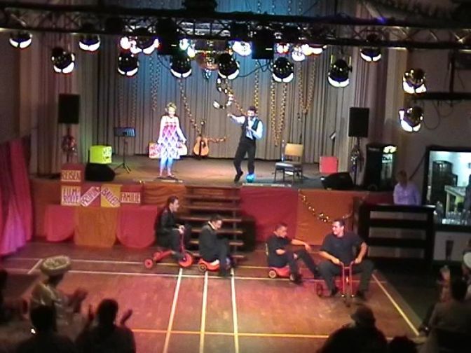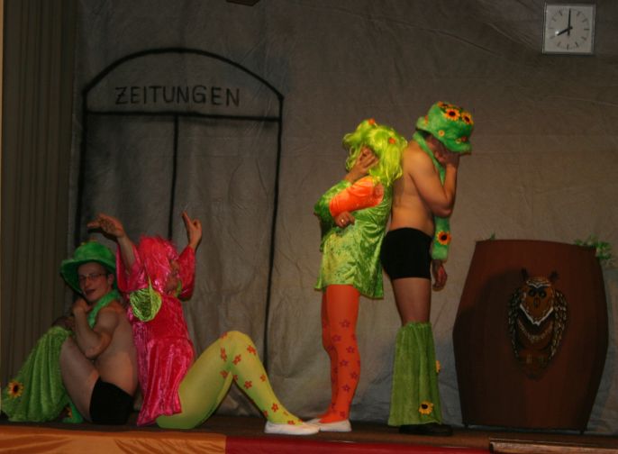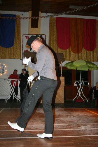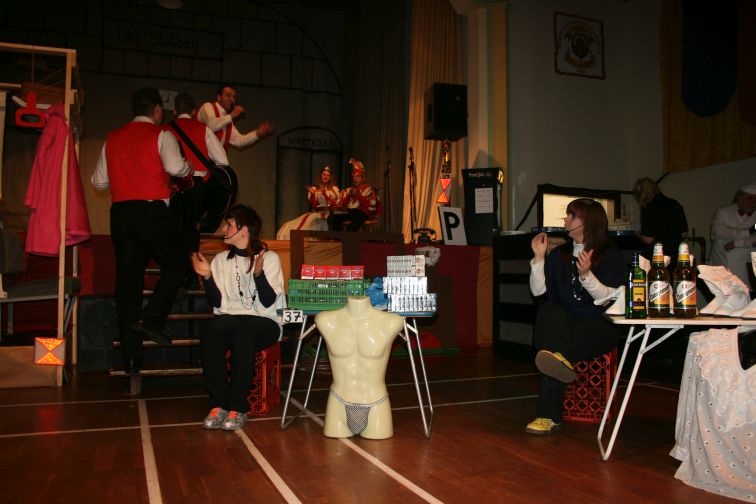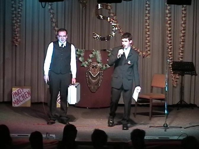 Zunächst begann unser Programm mit einer großzügigen Steuererstattung in Höhe von 100.000,34 €. Zu klären war nun, wie dieser Geldsegen sinnvoll einzusetzen sei. Die verschiedensten sinnvollen aber auch verrückten Vorschläge wurden durch die einzelnen Interessengruppen im Verein als Programmpunkte verdeutlicht, doch stets hatte auch immer ein gewisser Herr Reibach vom Finanzamt ein Wörtchen mitzureden. Am Ende des Programms wurde eine Entscheidung gefällt und der versehentliche Wortwitz korrigiert: