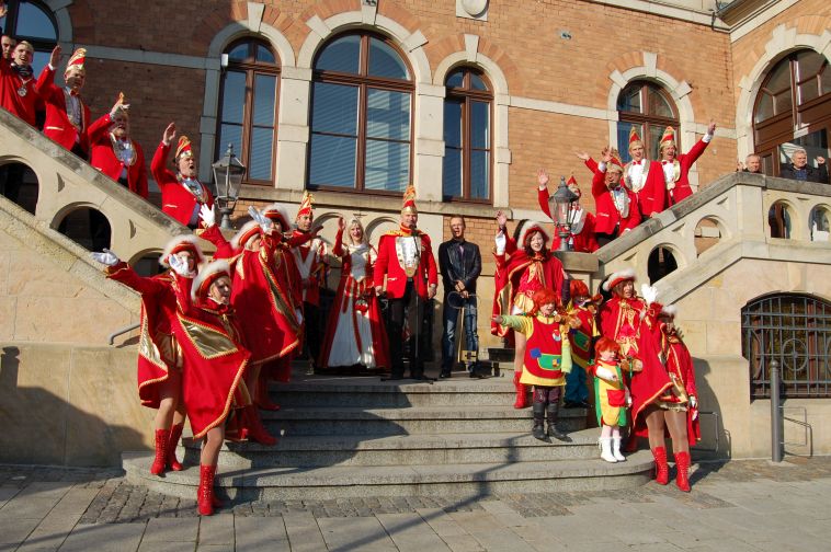 Carnevals-Vereinigung Stollberg vor das Rathaus und forderten die Herausgabe des Schlüssels.