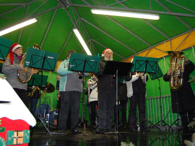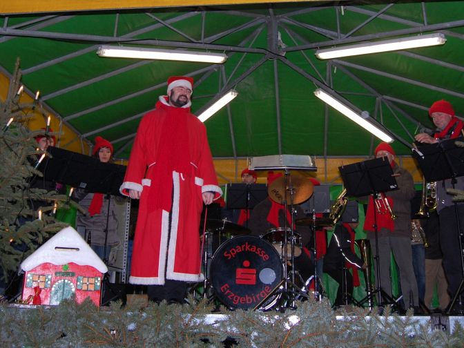 Auf dem Stollberger Hauptmarkt. Beim gemütlichen Glühwein trinken und musikalischer
