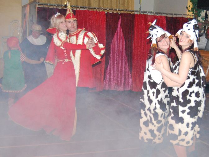 Cowboys, Indianer, Feen, Hexen, Piraten usw... versammelt um gemeinsam zu feiern.