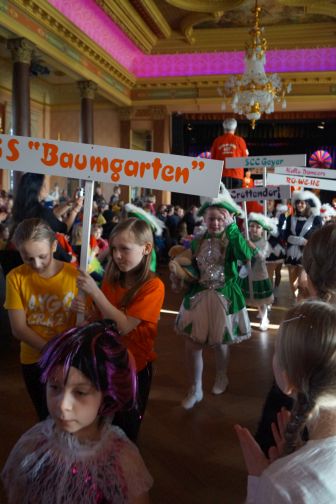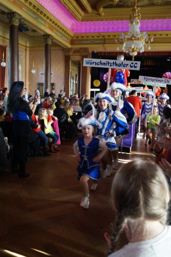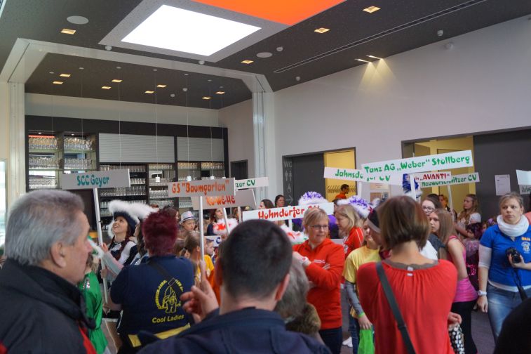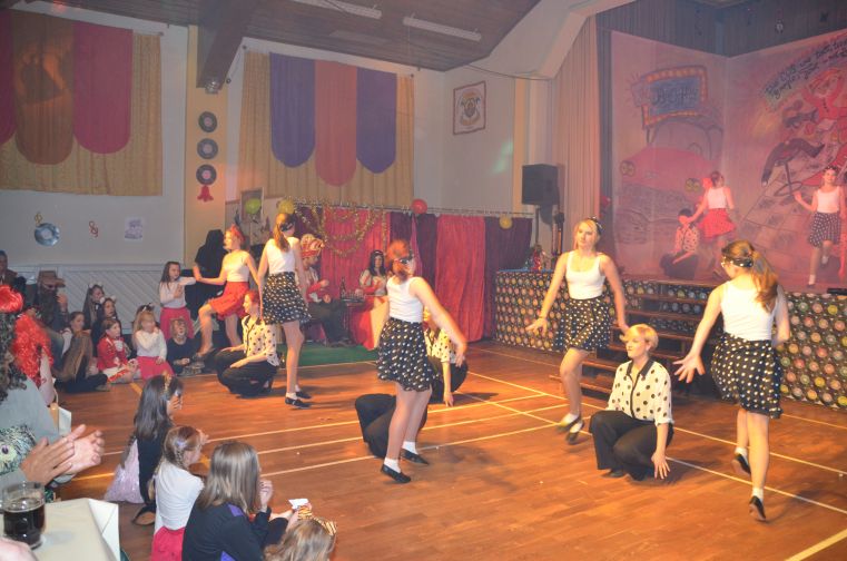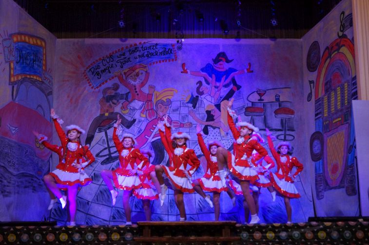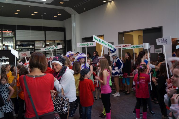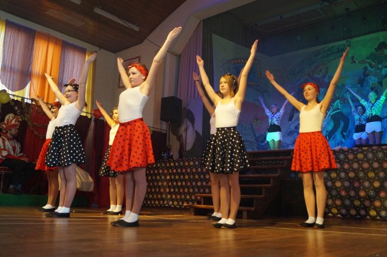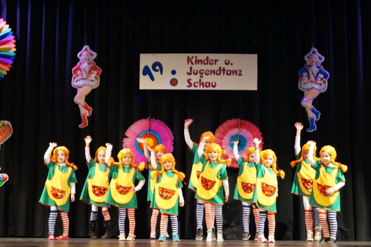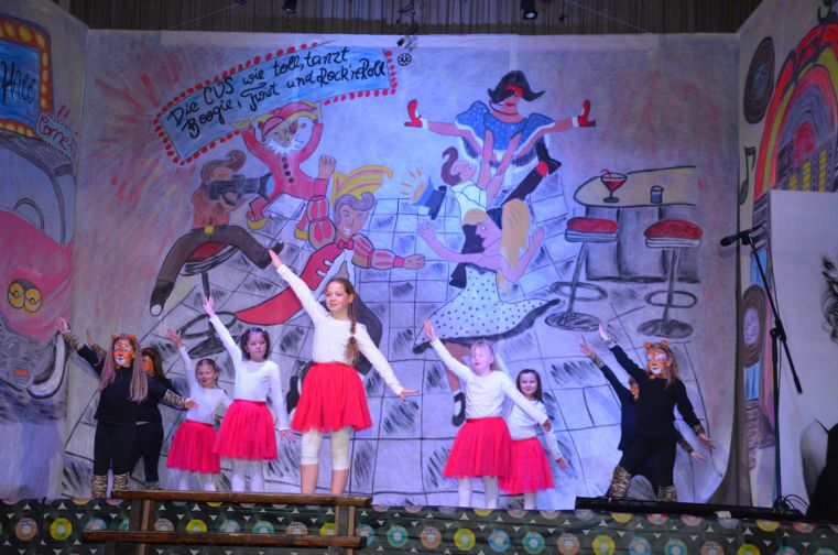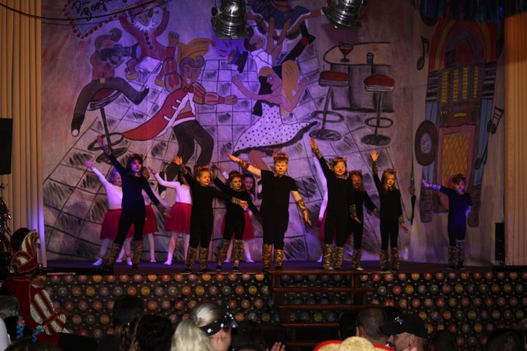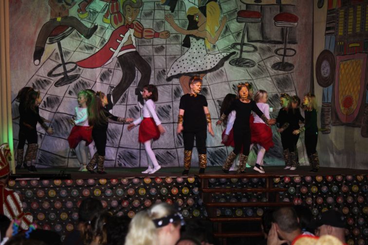 In der kleinsten Altersklasse hüpften dort ausgelassen gleich mehrere Pippi Langstrumpfs, tanzten Schneewittchen und die 7 Zwerge Hand in Hand, schlichen Löwen und Tiger auf leisen Sohlen, flogen flotte Bienchen und kleine Hexen auf ihren Besen. Die Größeren performten u.a. zu Techno, Hip Hop und Rock’n’Roll. In einem gesonderten Programmteil spielten traditionsgemäß die Funkengarden und Tanzmariechen der angereisten Karnevalsvereine die Hauptrolle.