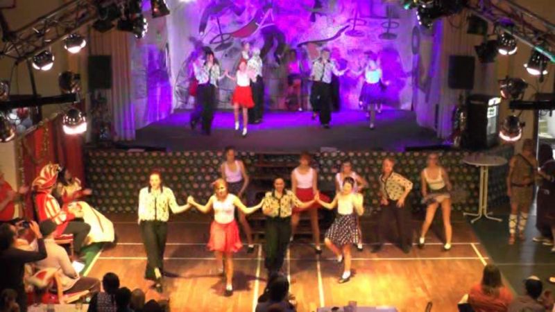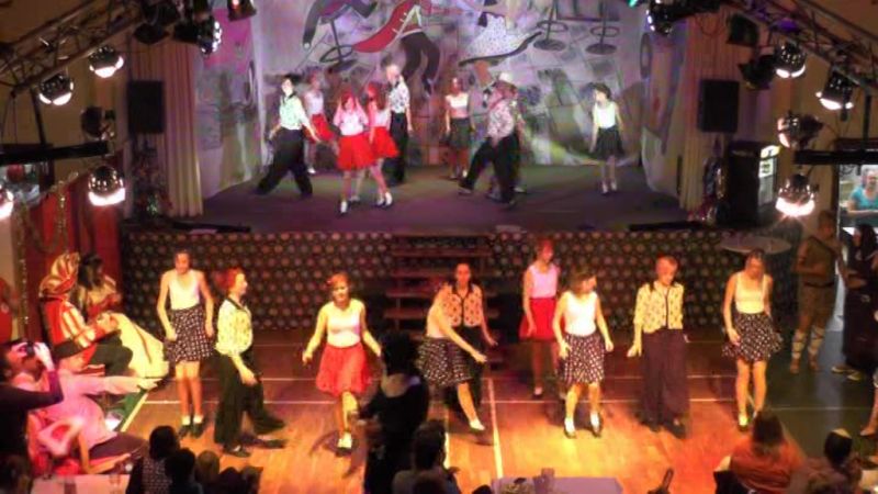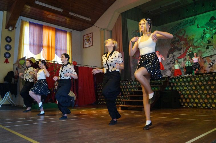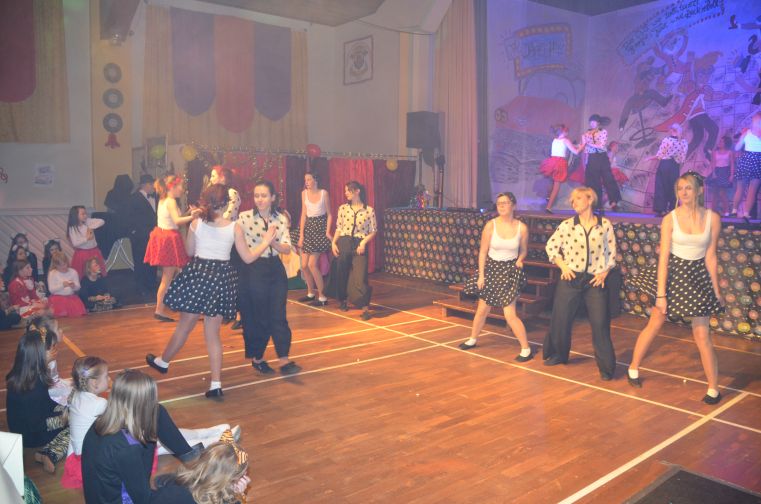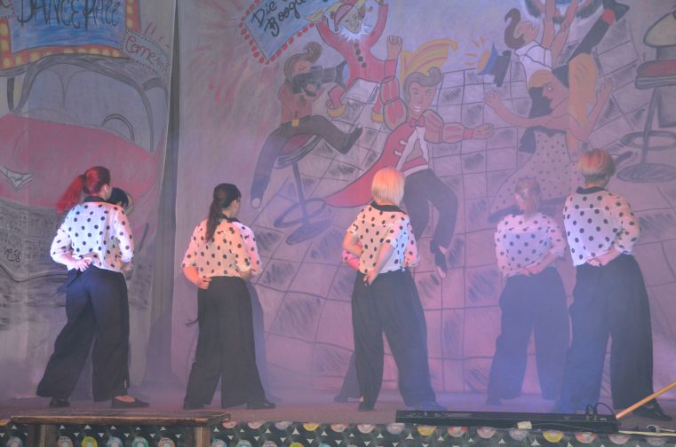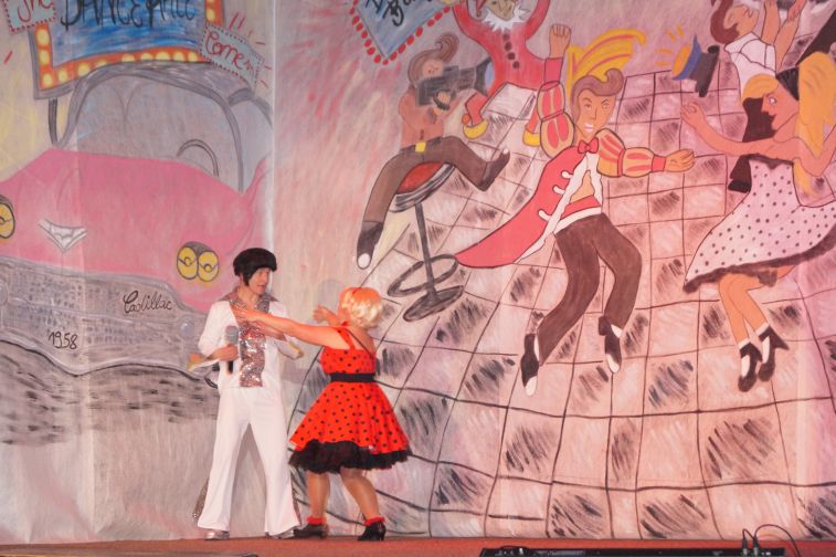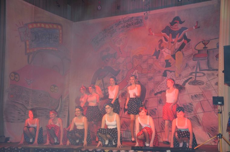 Ob das kesse Mädchen im „Itsy Bitsy Teenie Weenie Honolulu Strandbikini”, die Jüngsten mit dem „Tiger Twist” oder der riesige Tanzpulk, bestehend aus der mittleren und der großen Tanzgruppe zum fetzigem Sixties-Medley - sie alle hatten dabei jede Menge Spaß. Selbst das Männerballett ließ zum Boogie die Petticoats fliegen. Während unserer Hitparade gaben sich nationale und internationale Musikgrößen jener Zeit, wie Trude Herr, Roy Black oder Elvis, die Klinke in die Hand.