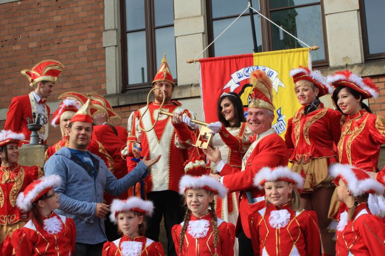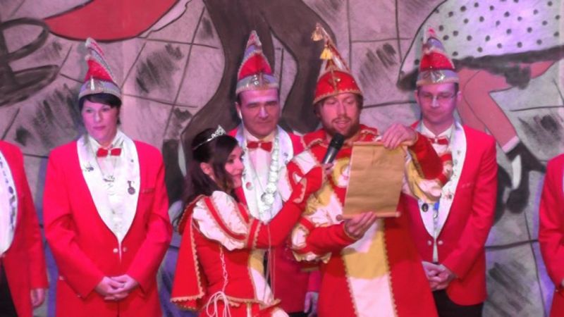 Anlass war der 11.11. In jedem Jahr läuten die Närrinnen und Narren der CVS die fünfte Jahreszeit ein. Symbolisch dabei die vorübergehende Entmachtung des Stollberger Oberbürgermeisters, der bis zum Aschermittwoch den Rathausschlüssel an das diesjährige Prinzenpaar Lisa die I. und Oliver I. aushändigen musste, die mit Elferrat, Garden und dem Schlachtruf „Stoll-per-berg-Helau” vors Rathaus zog.